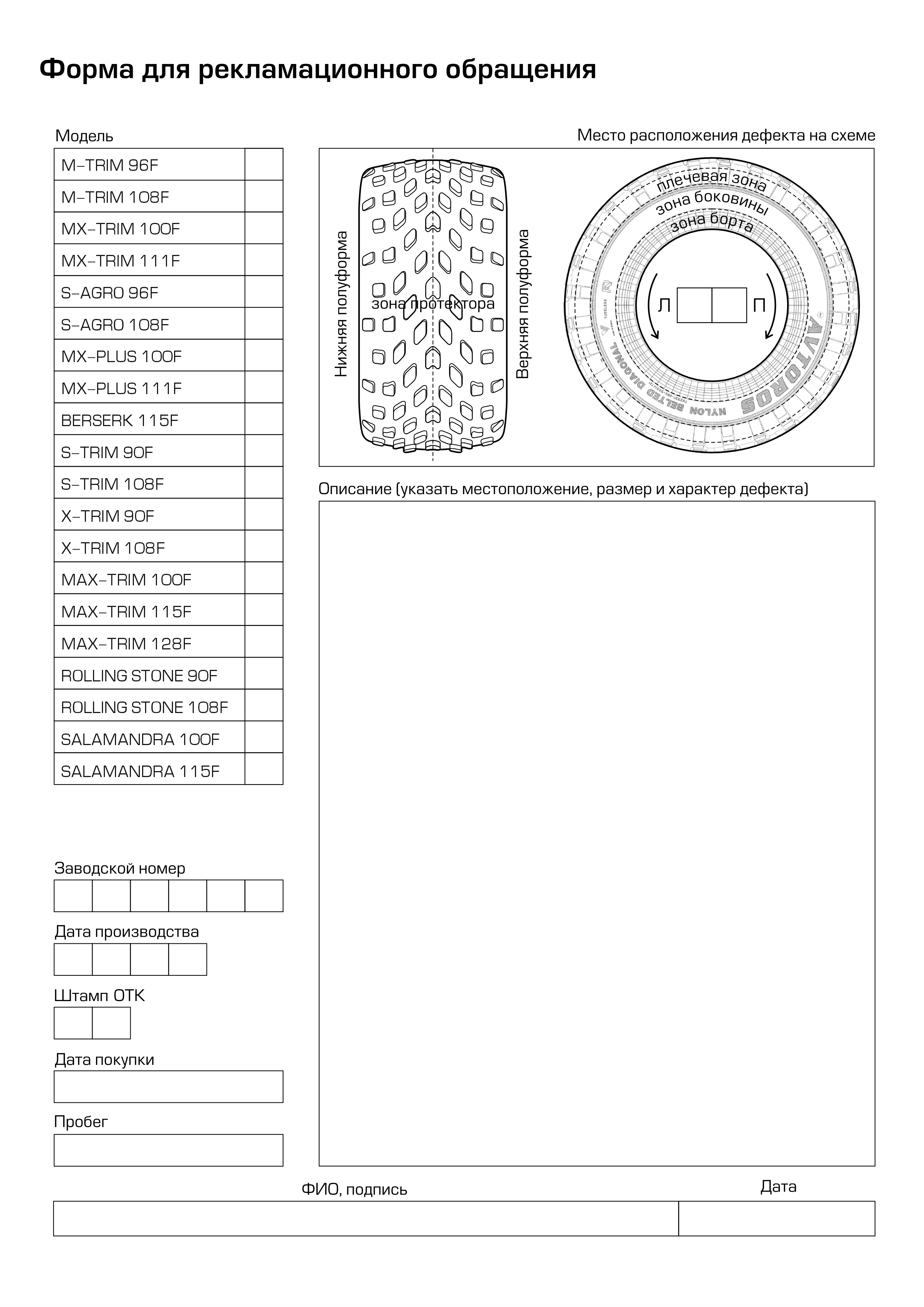 - Форма рекламационного обращения на шину